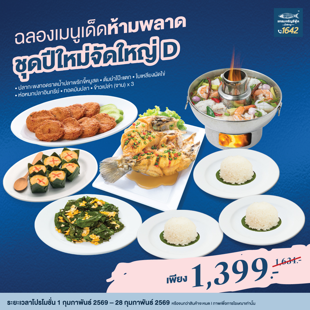 🎉ฉลองเมนูเด็ดห้ามพลาด 🥰 กับ ชุดปีใหม่จัดใหญ่ D เพียง 1,399.- (ปกติ 1,634.-)