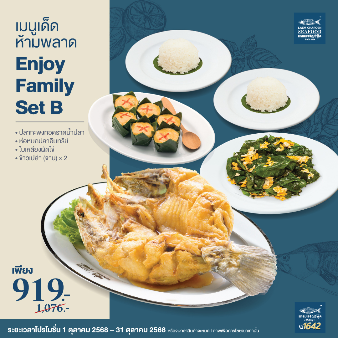 😍 เมนูเด็ดห้ามพลาด 🐟 กับ Enjoy Family Set B เพียง 919.- (ปกติ 1,076.-)